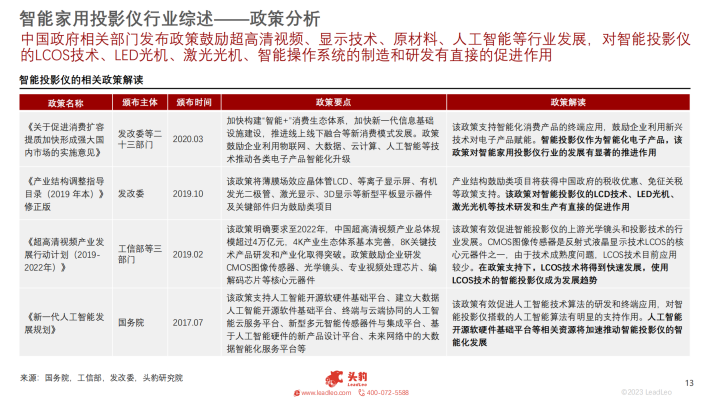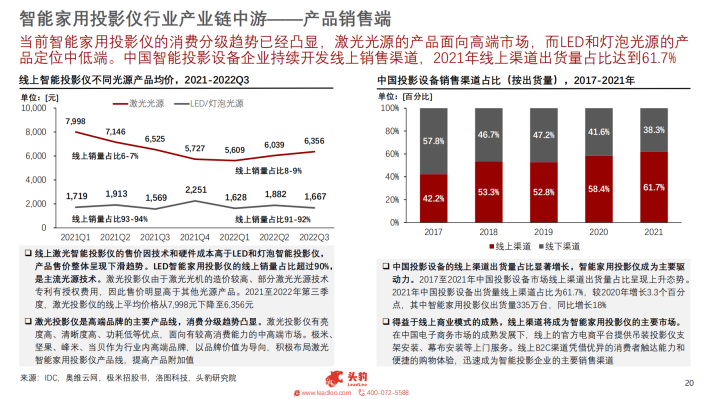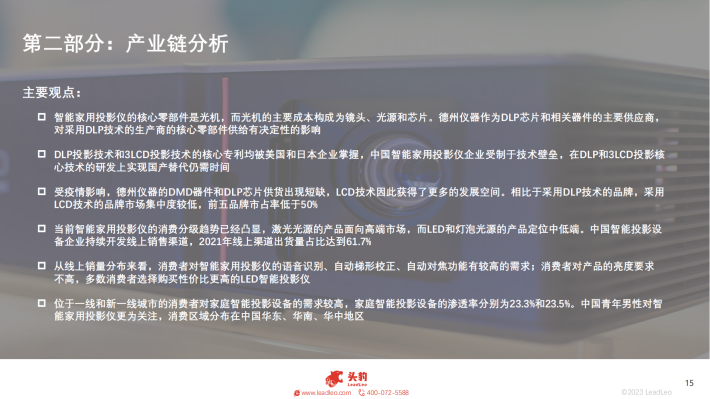 采用DLP技术和LCD技术的智能家用投影仪市场份额发生翻转