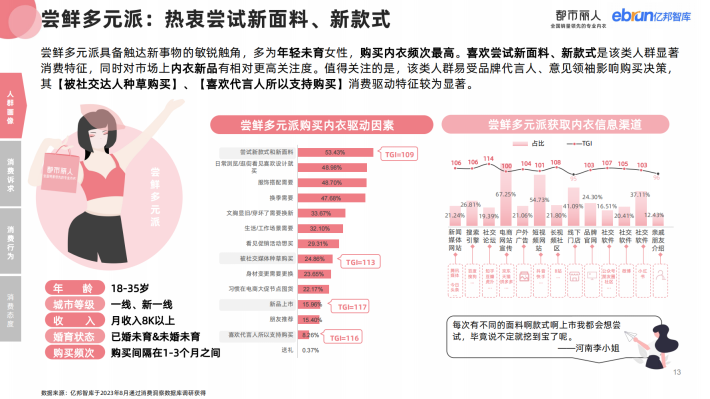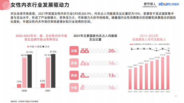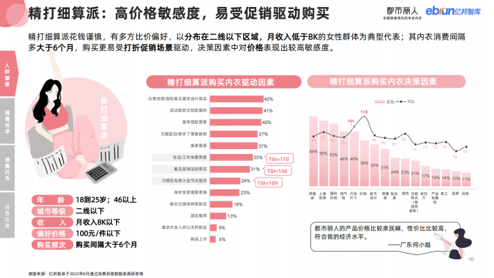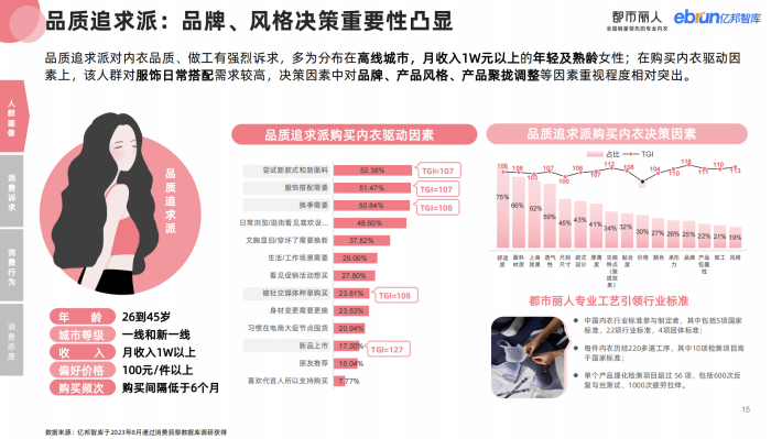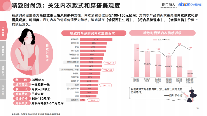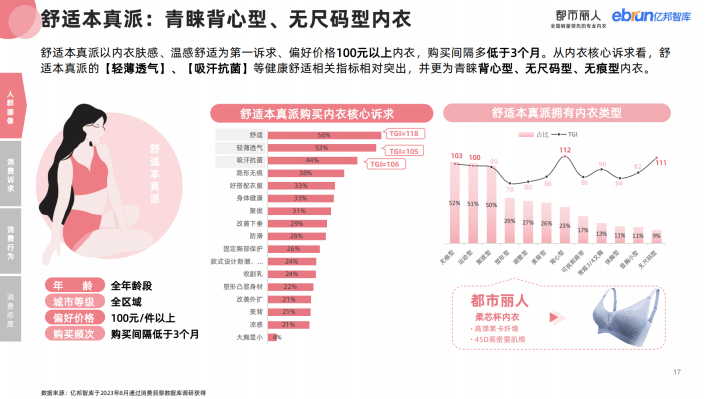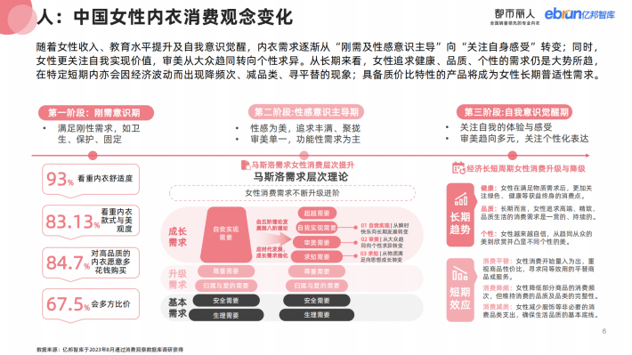 随着女性收入、教育水平提升及自我意识觉醒,内衣需求逐渐从“刚需及性感意识主导”向"关注自身感受"转变;同时,女性更关注自我实现价值,审美从大众趋同转向个性求异。从长期来看,女性追求健康、品质、个性的需求仍是大势所趋,在特定短期内亦会因经济波动而出现降频次、减品类、寻平替的现象;具备质价比特性的产品将成为女性长期普适性需求。