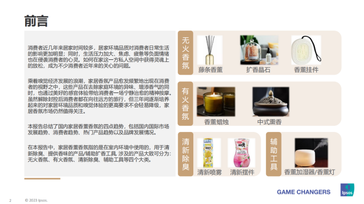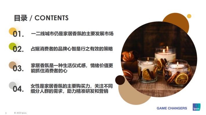 本报告总结了国内家居香薰香氛的四点趋势,包括国内国际市场发展趋势、消费者趋势、热门产品趋势以及品牌发展情况。