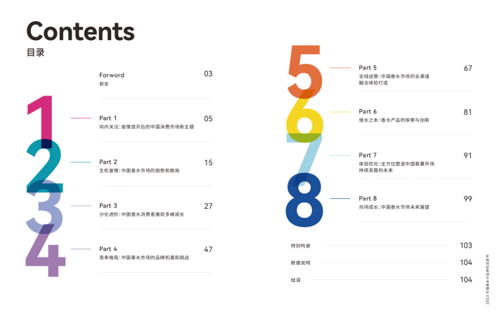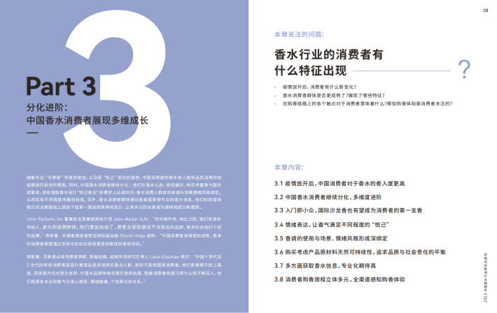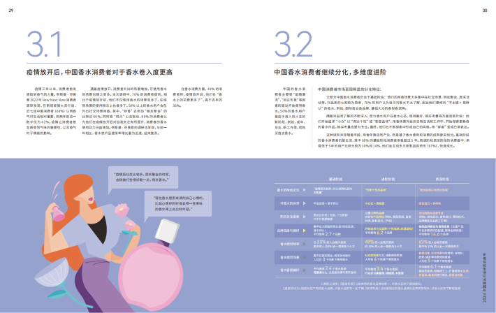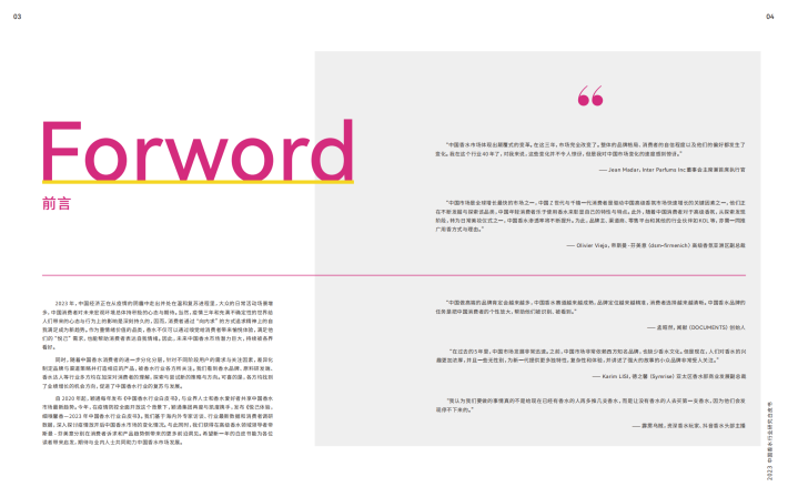 自2020年起,颖通每年发布《中国香水行业白皮书》,与业界人士和香水爱好者共享中国香水市场最新趋势。今年,在疫情防控全面开放这个背景下,颖通集团再度与凯度携手,发布《悦己体验,细嗅馨香-2023年中国香水行业白皮书》。我们基于海内外专家访谈、行业最新数据和消费者调研数据,深入探讨疫情放开后中国香水市场的变化情况。与此同时,我们获得在高级香水领域领导者帝斯曼-芬美意分别在消费者诉求和产品趋势侧带来的更多前沿洞见。希望新一年的白皮书能为各位读者带来启发,期待与业内人士共同助力中国香水市场发展。