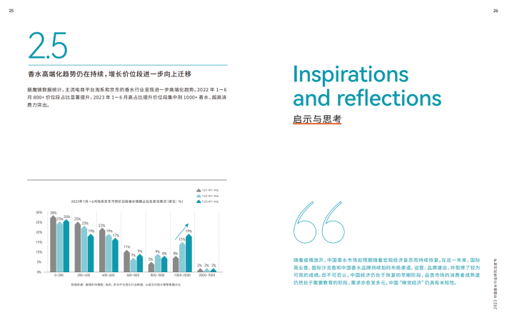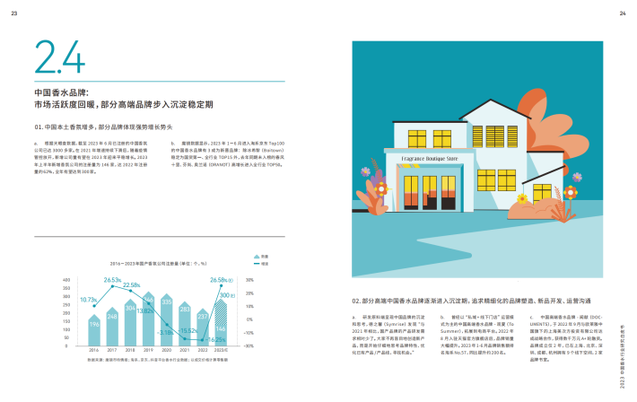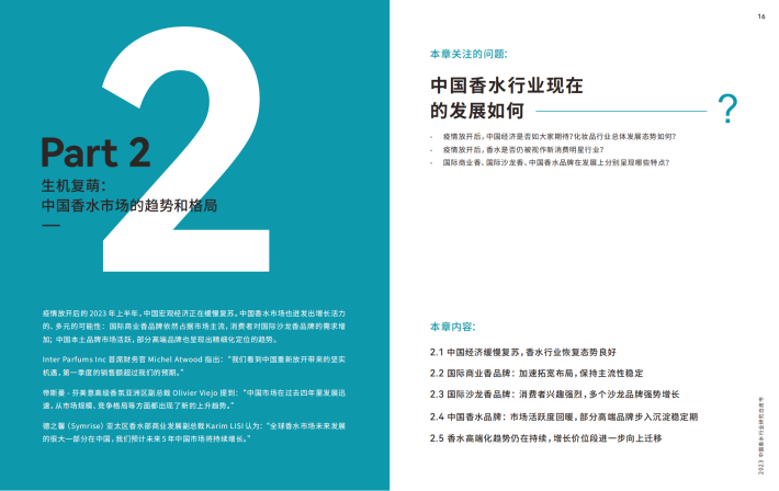 同时,随着中国香水消费者的进一步分化分层,针对不同阶段用户的需求与关注因素,差异化制定品牌与渠道策略并打造相应的产品,被香水行业各方所关注。我们看到香水品牌、原料研发端、香水达人等行业多方均在加深对消费者的理解,探索与尝试新的策略与方向。可喜的是,各方均找到了业绩增长的机会方向,促进了中国香水行业的复苏与发展。