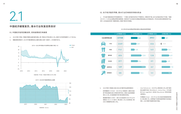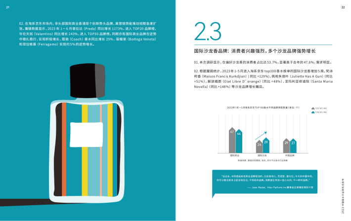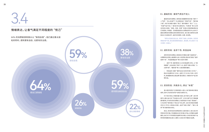 2023年,中国经济正在从疫情的阴霾中走出并处在温和复苏进程里,大众的日常活动场景增多,中国消费者对未来宏观环境总体持积极的心态与期待。当然,疫情三年和充满不确定性的世界给人们带来的心态与行为上的影响是深刻持久的,因而,消费者通过“向内求”的方式追求精神上的自我满足成为新趋势。作为重情绪价值的品类,香水不仅可以通过嗅觉给消费者带来愉悦体验,满足他们的“悦己”需求,也能帮助消费者表达自我情绪。因此,未来中国香水市场潜力巨大,持续被各界看好。
