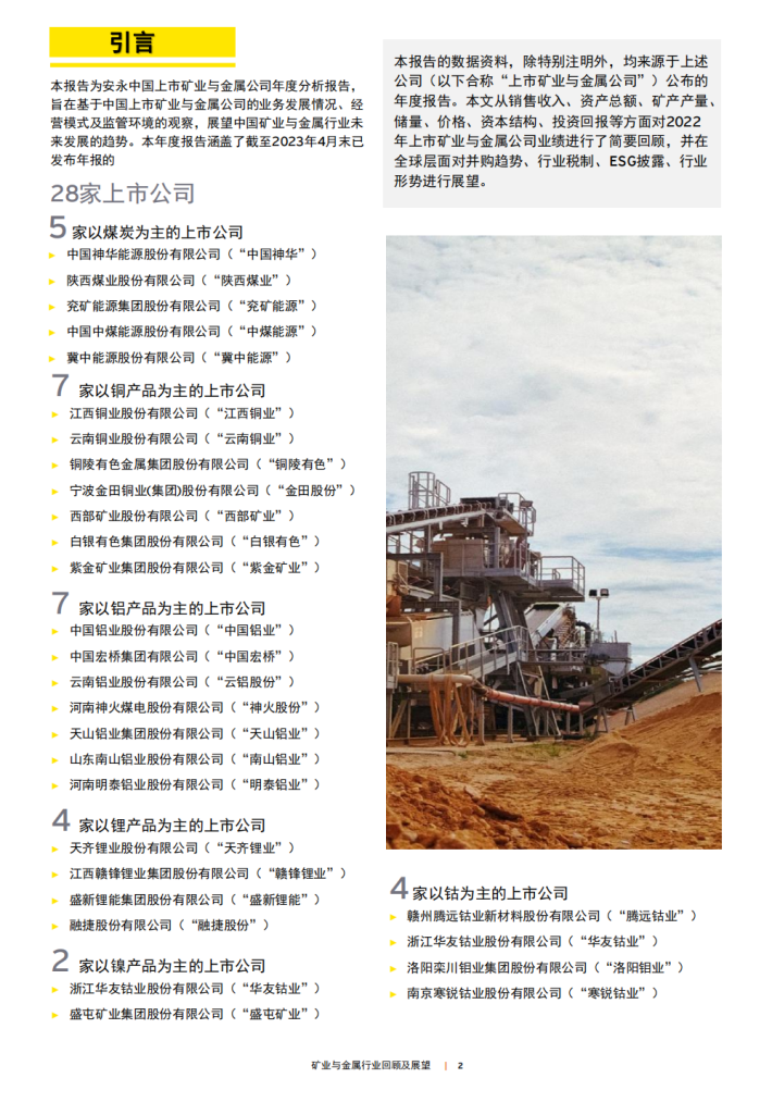 福布斯全球2000强考虑了公司销售、净利、资产和市值四个方面的指标,并用这些指标进行排名。下表列示了11家上榜2022福布斯全球企业2000强的矿企,分别是:中国神华、紫金矿业、陕西煤业、兖矿能源、中国宏桥、中国铝业、江西铜业、洛阳钼业、铜陵有色、云南铜业、淮北矿业。