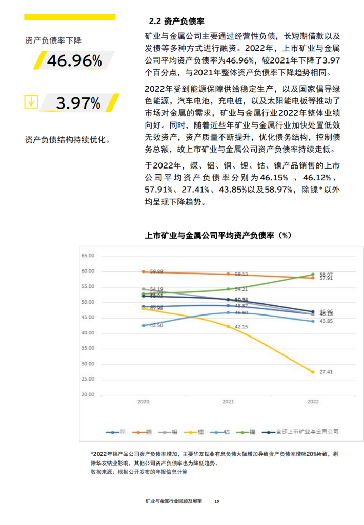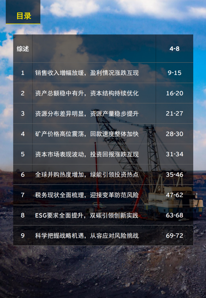 在复杂多变的国际形势下,中国矿业市场顶住压力,发展稳中向好。根据国家统计局数据,2022年中国采矿业固定资产投资较上年增长4.5%,工业增加值增长7.3%,全年实现利润总额15,573.6亿元,同比增长48.6%,其中煤炭开采和洗选业实现利润总额10,202.0亿元,同比增长44.3%,有色金属矿采选业实现利润总额743.5亿元,同比增长37.3%。