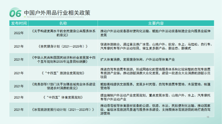 新冠疫情后国民健康意识的觉醒,户外运动打卡将成为新时尚,甚至成为新的社交方式。此外,近年来,城市居民对亲近自然、拥抱自然、享受自然的渴望也将推动更多的人进行户外运动,户外运动成为常态。
