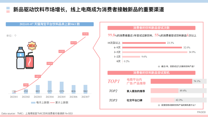 电商渠道因打破时空限制,免去了线下渠道的复杂经销链条、终端空间及费用限制,成为新品、新品牌的优先选择。天猫作为新趋势集中地,拥有良好的新品萌芽、品牌成长的土壤,成为市场新趋势的试验田。