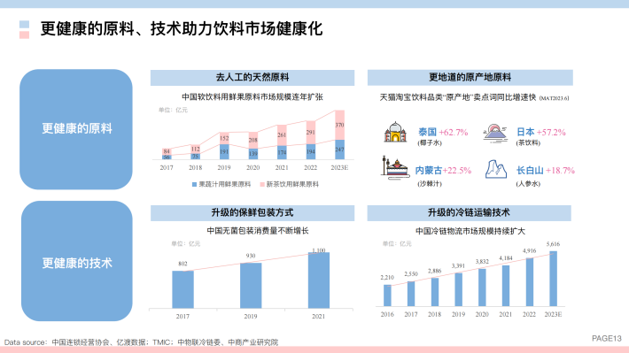随着大众健康意识的不断升级,越来越多的消费者开始改变传统高碳高脂肪的饮食方式,追求更新鲜、天然、简单的成分,成为“饮食成分党”。而饮料作为生活饮食中不可替代的消费品,也从解渴、好喝的基本需求,延伸出天然健康、运动充能、情绪解压等功能性需求,被消费者称为“快乐水”。新的消费需求、消费场景带来了饮料细分市场的快速成长,众多传统大型集团加速新品研发,也不乏新锐品牌异军突起,引领细分品类创新。
