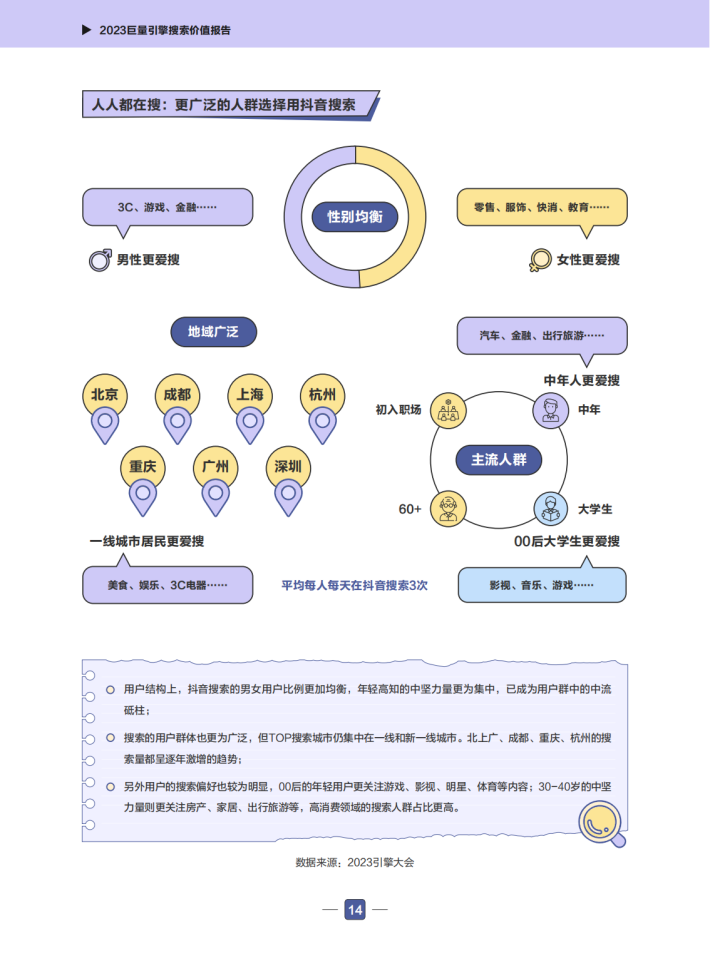 近年来,巨量搜索引擎的相关数据快速增长,抖音搜索关键词泛化到了各行各业。用户打开抖音搜索的已经不仅仅是娱乐类信息,更是包括了餐饮美食、电商购物、工作学习等多方面的需求。现在的抖音搜索已经是一个综合性的搜索引擎。