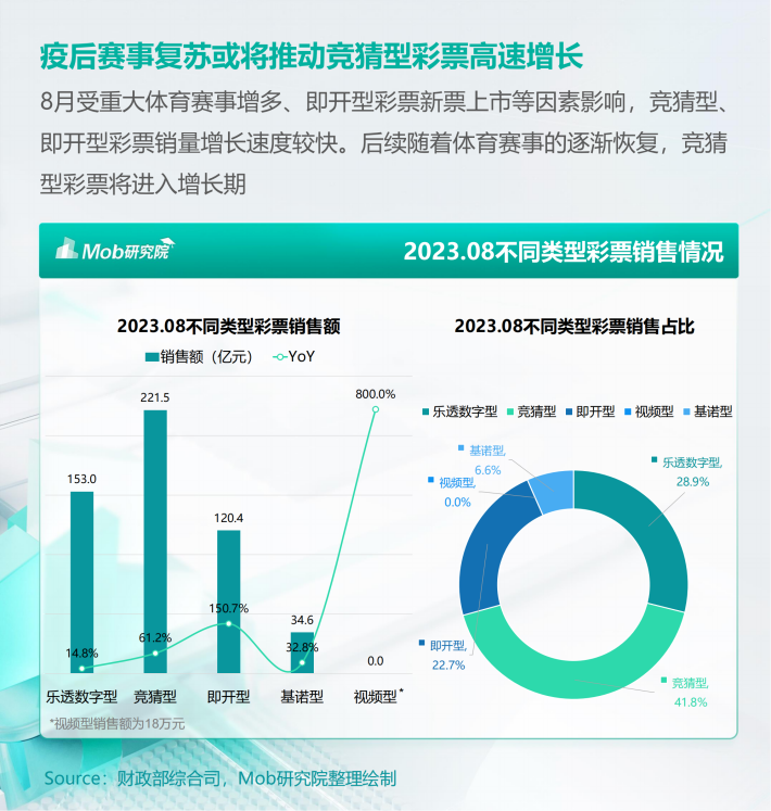 8月受重大体育赛事增多、即开型彩票新票上市等因素影响,竞猜型、即开型彩票销量增长速度较快。后续随着体育赛事的逐渐恢复,竞猜型彩票将进入增长期