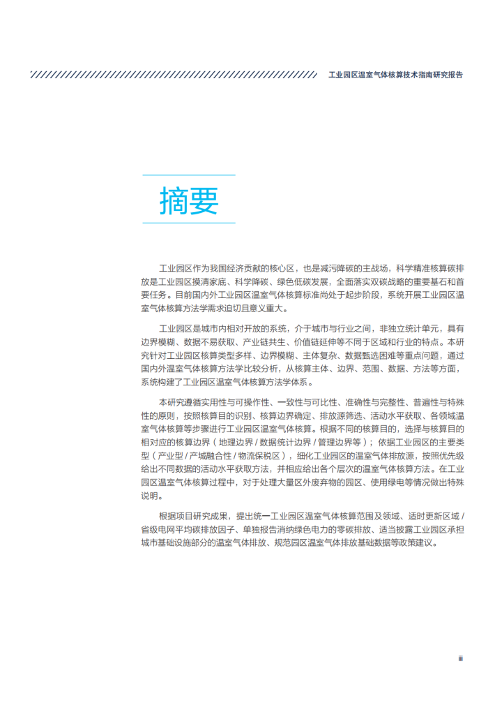 工业园区作为我国经济贡献的核心区,也是减污降碳的主战场,科学精准核算碳排放是工业园区摸清家底、科学降碳、绿色低碳发展,全面落实双碳战略的重要基石和首要任务。目前国内外工业园区温室气体核算标准尚处于起步阶段,系统开展工业园区温室气体核算方法学需求迫切且意义重大。