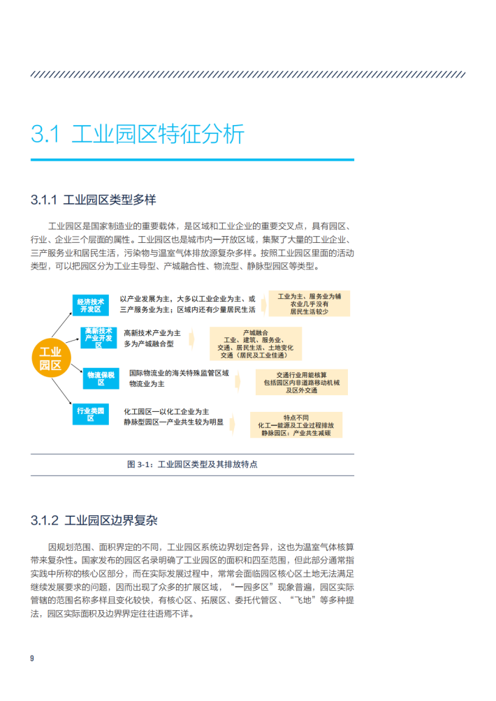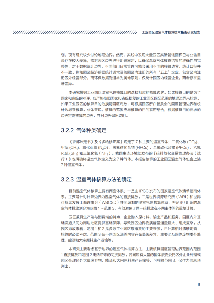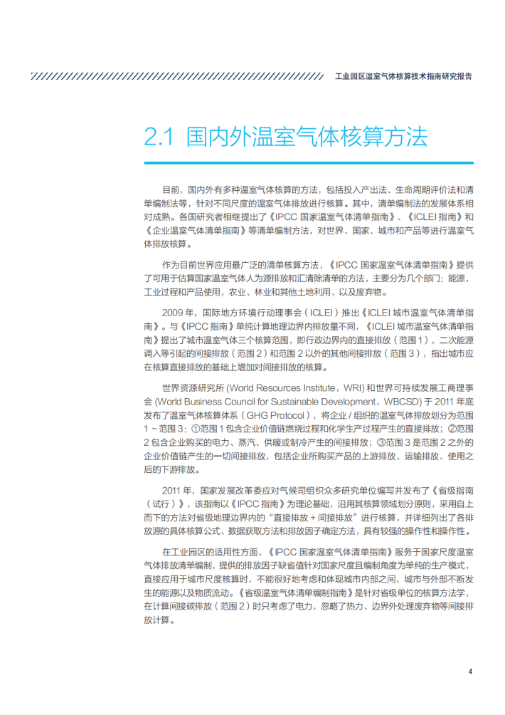 工业园区是城市内相对开放的系统,介于城市与行业之间,非独立统计单元,具有边界模糊、数据不易获取、产业链共生、价值链延伸等不同于区域和行业的特点。本研究针对工业园区核算类型多样、边界模糊、主体复杂、数据甄选困难等重点问题,通过国内外温室气体核算方法学比较分析,从核算主体、边界、范围、数据、方法等方面,系统构建了工业园区温室气体核算方法学体系。