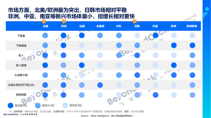 从收入的地区分布来看:北美依然是最主要的市场,收入份额占比超过66%,此外欧洲/日韩等发达国家市场收入也占据较大的份额。印度市场虽然较受资本关注,融资规模大,但受当地消费者收入情况/消费习惯等影响,变现能力依然较弱。