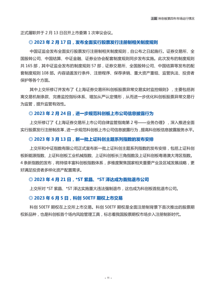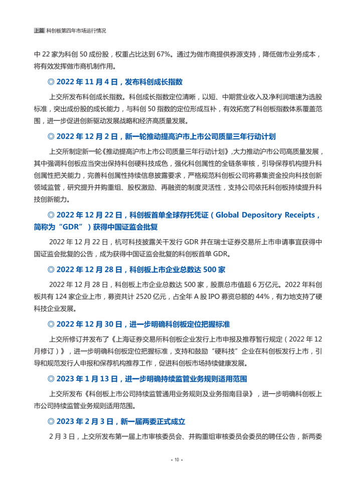 四年磨一剑,A股全面注册制正式落地。经过四年的试点实践,我国股票发行注册制实现了从“试验田”走向全市场的关键一跃,2023年2月全面注册制改革正式落地,开启了资本市场高质量发展的全新篇章。而全面注册制改革的突破口正是始于设立科创板并试点注册制。科创板开板四年以来,其引领示范、产业集聚的效应持续扩大,高质量的“硬科技”企业群体稳步壮大,由企业主导的创新成果竞相涌现、关键核心技术不断取得重要进展。科创板日益成为畅通科技、资本和产业高水平循环的纽带。