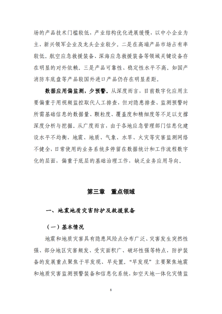 强化安全源头治理,提升应急管理和救援能力,正是安全应急产业在提升我国安全保障水平发挥应有作用的着力点。从2011年《安全生产“十二五”规划》在“完善安全科技支撑体系,提高技术装备的安全保障能力”中提到“促进安全产业发展”,到2022年《“十四五”国家应急体系规划》中的“壮大安全应急产业”,不仅说明国家经济社会发展的进步与安全应急产业的发展密不可分,而且在完善我国应急体系建设、推进安全发展中,安全应急产业发展至关重要。