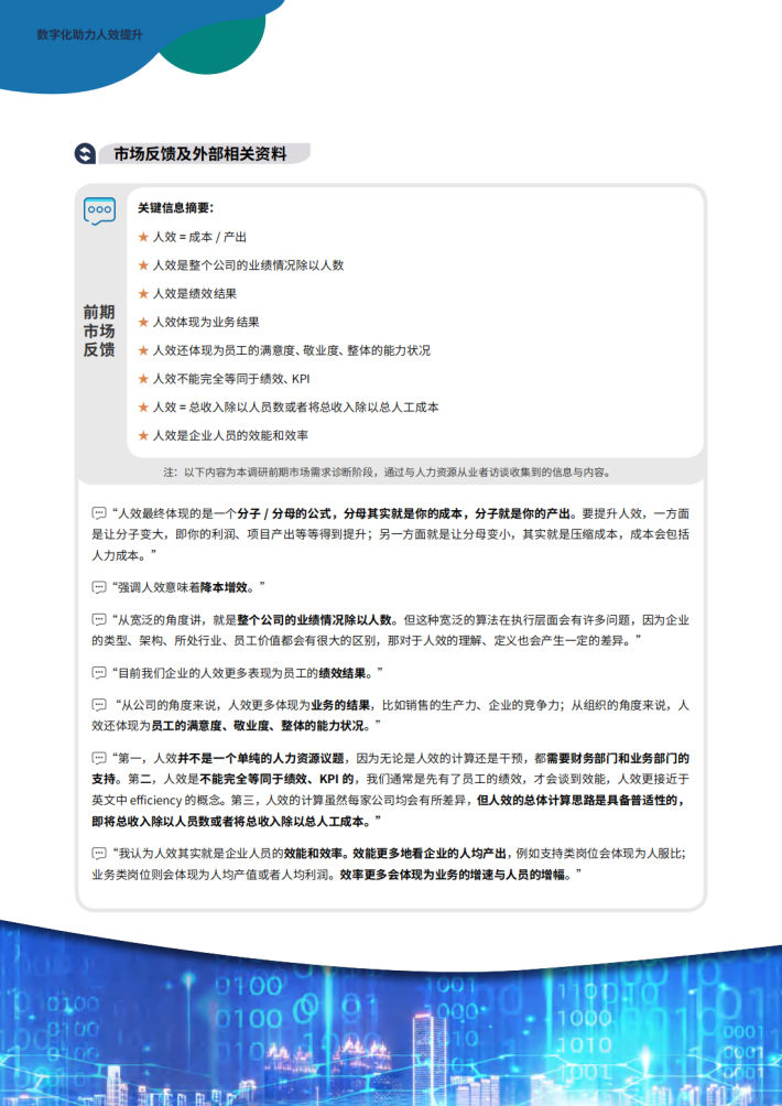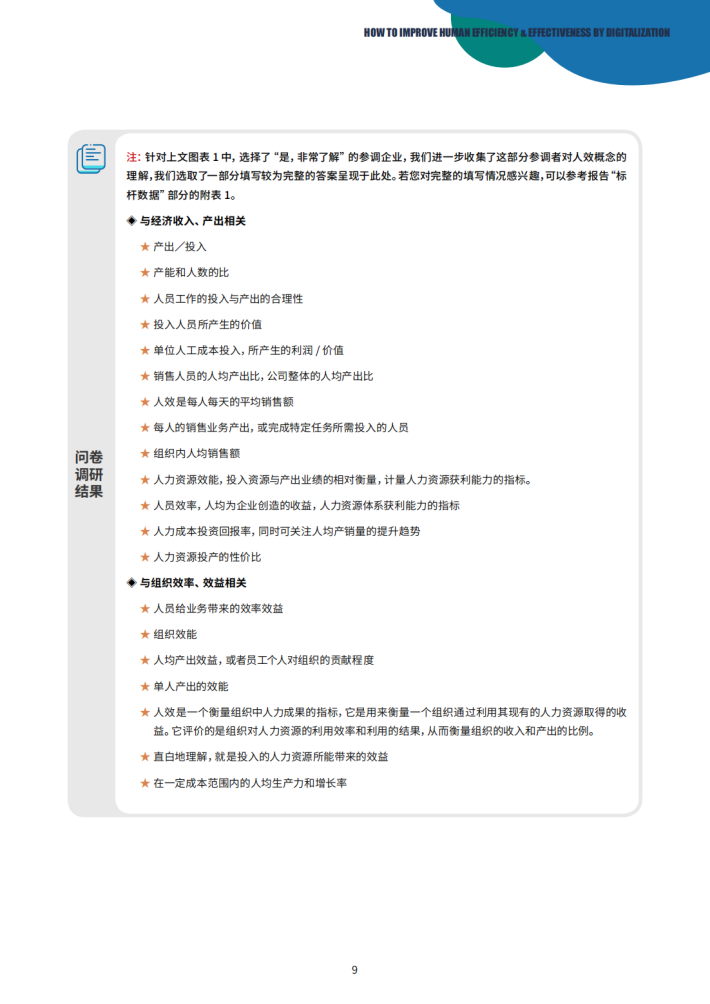 虽然人效提升是一个需要在企业整体层面予以关注的话题,但介于本研究的读者群体基本以人力资源从业者为主,本次调研我们将从人力资源的视角出发,探讨人效的概念与提升方式,试图帮助HR梳理出一条清晰的人效管理脉络,从而更好地为企业服务,实现人力资源的价值。