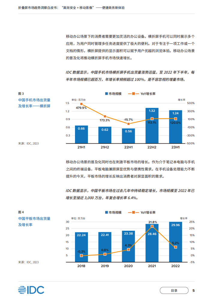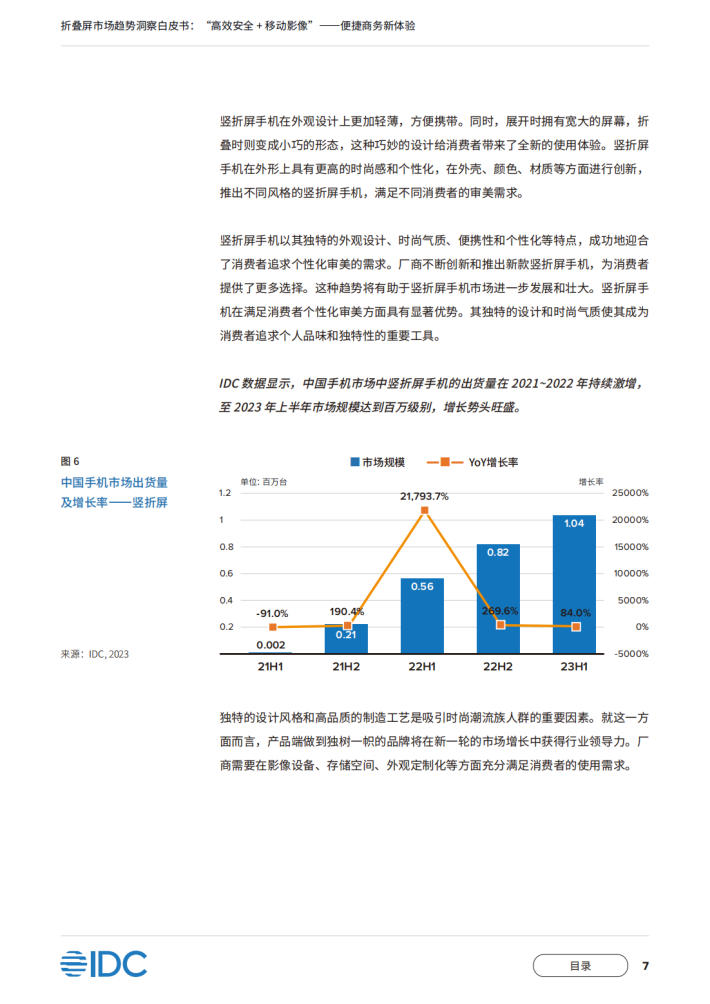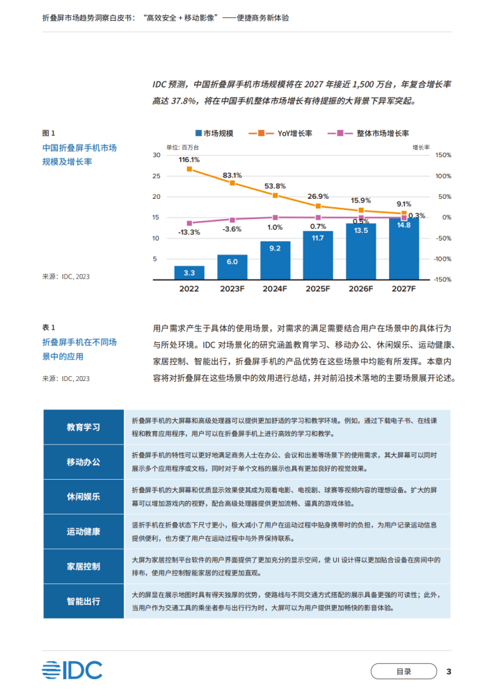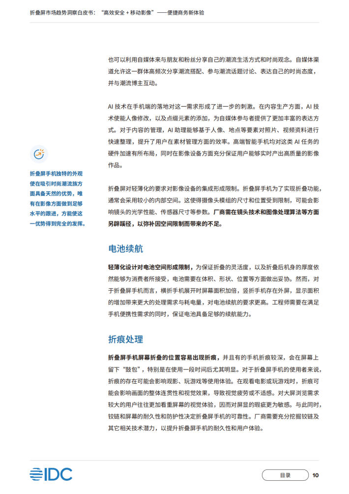 折叠屏手机作为兼具大屏幕、便携性等特点的智能手机,极大拓宽了在用机方式上自由发挥的余地,将场景创新的可能性拉升到了新的维度。横折手机屏幕的拓展可以同时展示多个应用程序或文档,为用户在多任务处理、视频会议办公的过程带来极大便利,扩大后的屏幕还可以为文件浏览、视频播放、游戏、线上听课等活动带来更好的视觉体验。竖折手机突破了机身长度对便携性的限制,使用户在穿戴方面更加灵活,与时尚元素的相容性更高。