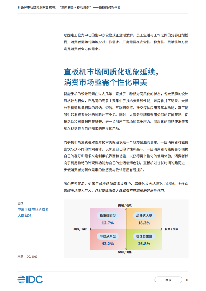 与此同时,产品的同质化导致品牌在满足消费者需求方面缺乏创新。过去几年中,智能手机的设计元素不断走向统一,直板机的造型风格趋于相似。大量厂商对技术参数和性能的追求超越了对消费者个性化、实用性、体验性需求的关注。在硬件和软件功能方面,大部分手机都具备相似的通话、社交媒体应用、互联网浏览等基本功能。市场亟待新的需求刺激拉动增长。