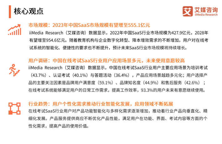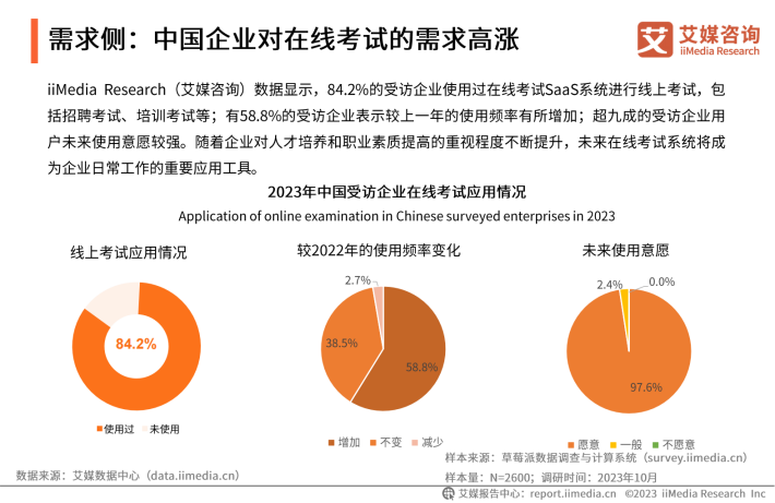 用户调研:中国在线考试SaaS行业用户应用场景多元,未来使用意愿较高