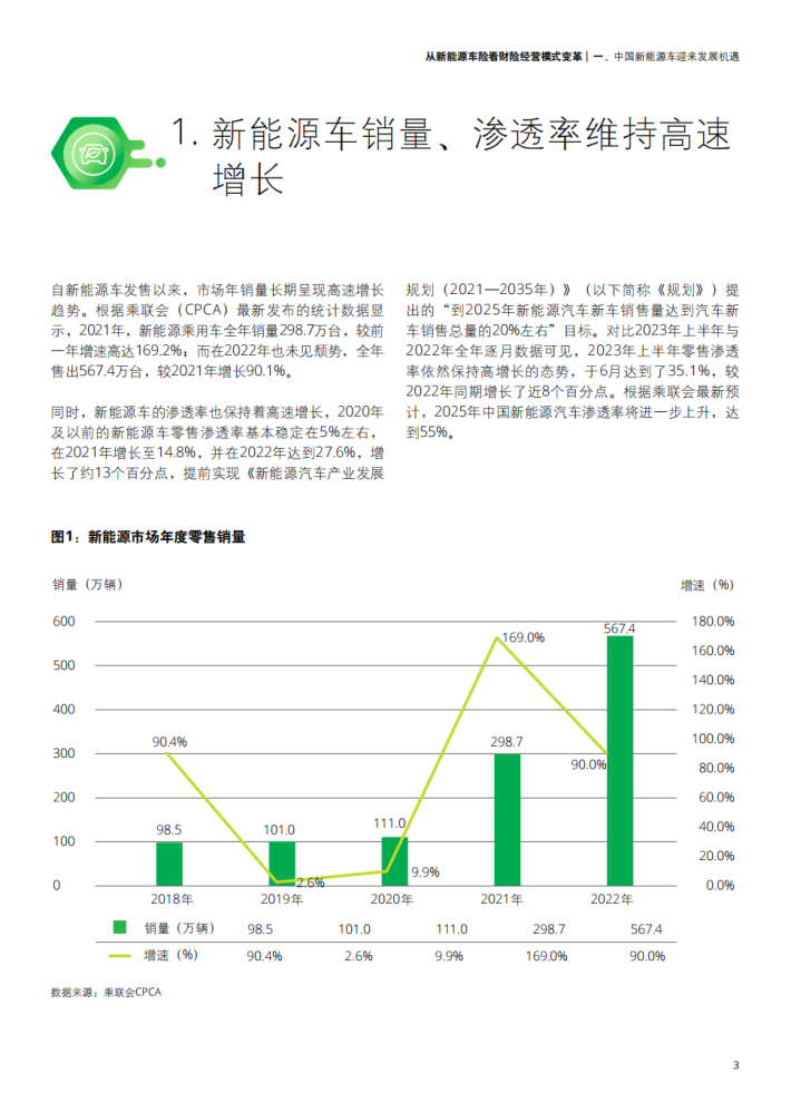 在我国“双碳”1目标指引下,协同不断推陈出新的新能源汽车²利好政策,新能源汽车凭借其低使用成本、续航里程不断增加、迅速技术迭代、优良的驾驶体验等优势,逐渐深入购车用户群体,产销均进入了高速增长阶段,并在2022年提前实现国家设定的2025年渗透率目标,预计仍将在未来一段时期保持高速增长的态势。