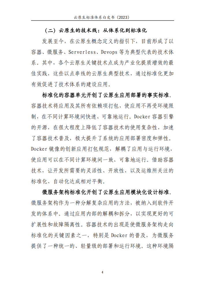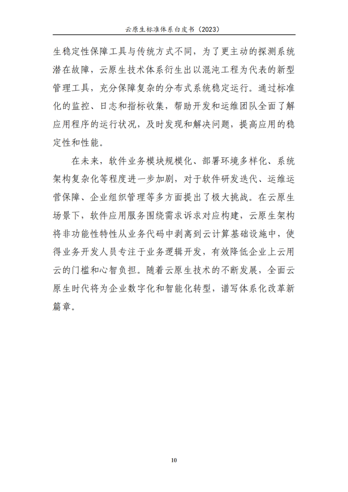 本白皮书主要围绕云原生标准化,研究分析国内外标准化历程和关键内涵,给出云原生标准体系的顶层设计、实施路径和建设内容,结合典型场景实践案例,为云原生服务提供商、技术开发者以及标准化从业人员等,系统性提供体系化的云原生标准化指导。