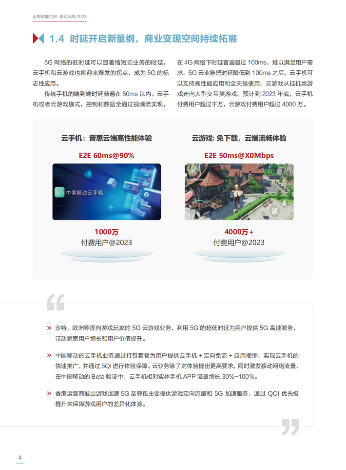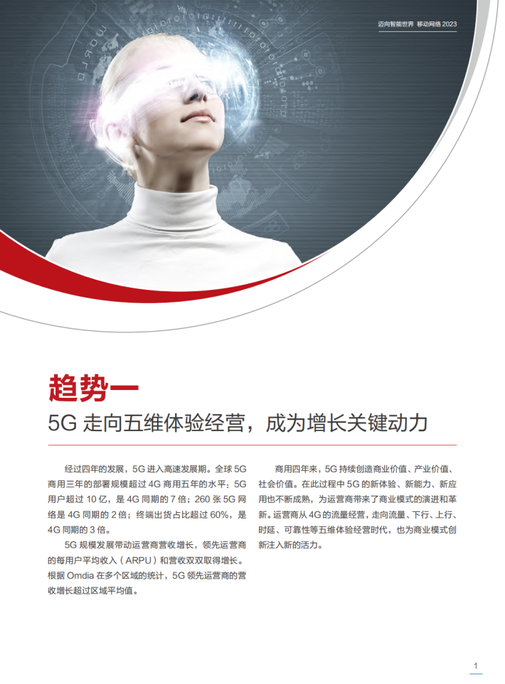 5G也开始为运营商带来更多变现机会。首先是5G流量红利已经兑现,5G已成为移动流量的主力承载。其次,运营商也纷纷开启5G商业模式创新实践,基于速率、上行能力、时延等能力的5G多维体验经营,也成为运营商增长的关键动力。