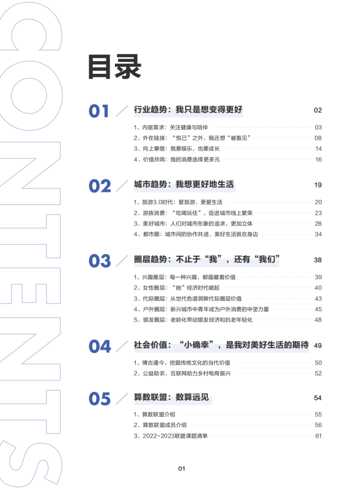 2022-2023年,在算数联盟成员内发起众筹课题共建,联动了50余家知名机构,覆盖20多个行业、城市及人群趋势的观察,共推出50余份洞察报告,并得出关于市场消费和企业营销风向的共鸣: