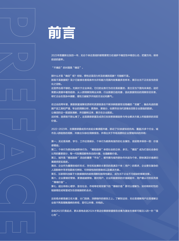 总结2023只是起点,更从容地走进2024才是这份算数联盟报告合集为激发生意新可能注入的一针“强心剂”。