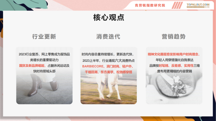 时尚内容总量持续增长,更新迭代快,2023上半年,行业涌现六大消费热点BARBIECORE、洞门时尚、轻户外、干禧回潮、东方美学、松弛感穿搭