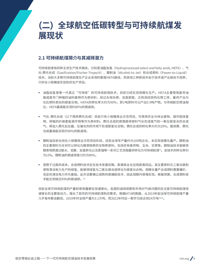 自双碳目标提出以来,随着可再生能源的大规模推广应用和清洁技术的快速发展,电力、工业、建筑、交通等主要行业已经在节能减排方面取得了长足进展。作为未来交通行业实现碳中和的关键,航空行业的低碳转型已经逐渐成为了行业关注的重点。随着能源转型行动的逐步深入,航空业作为传统的“难减排”领域正得到越来越多的关注。由于具备热值较高、零排放等特点,可持续航空煤油成为了航空零碳重要的解决方案。