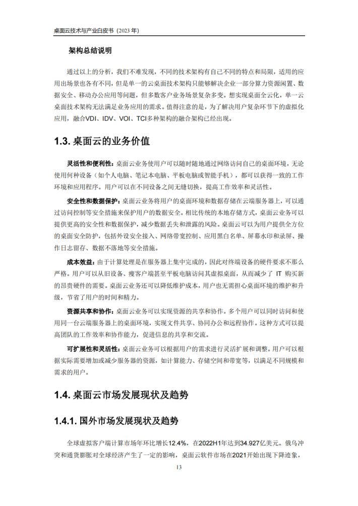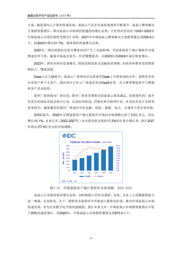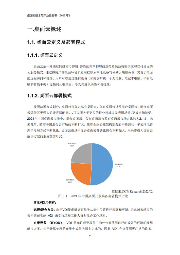 按照部署方式划分,桌面云可分为私有桌面云、公有桌面云以及混合桌面云,混合桌面云凭借其更强大的兼容适配能力,可以服务于更多的行业领域以及应用场景,更被市场接受,2021年中国桌面云市场中,混合桌面云、公有桌面云与私有桌面云市场占比约为2:1:1,未来几年,随着中国混合云市场的不断扩大,随着企业云础架构部署的不断深化,多云环境管理手段和方式不断优化,桌面云市场中混合桌面云部署比例会不断加大,未来将成为桌面云解决方案的主流部署形式。