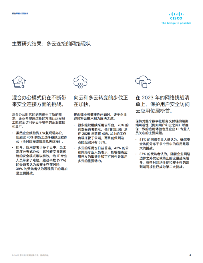 41%的网络专业人员认为,确保安全访问分布于多个云中的应用是最大的挑战。