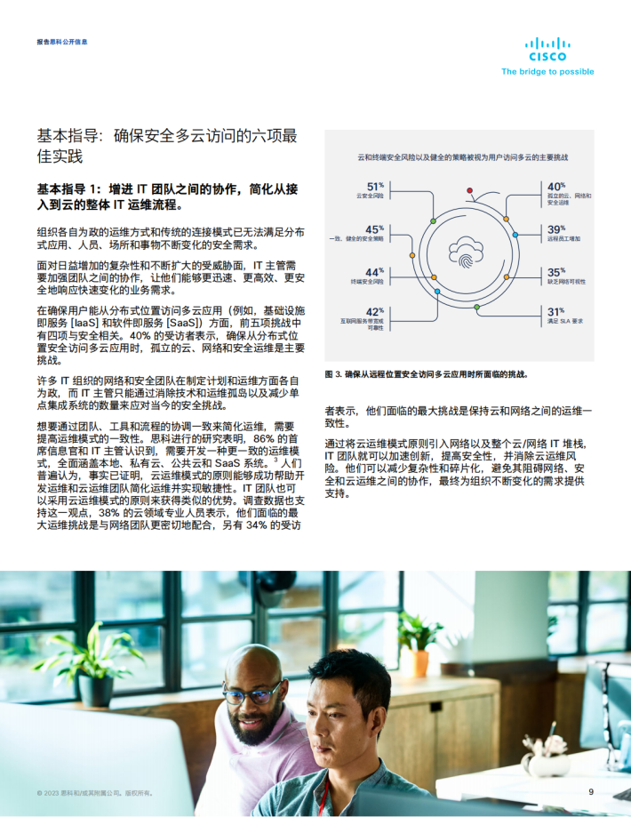 虽然企业鼓励员工恢复现场办公,但超过40%的员工选择继续远程办公(全时远程或每周几天远程)。如今,应用部署于多个云中,员工高度分布式办公,这种转变导致传统的安全模式难以奏效,给Ⅱ专业人员带来了难题。超过半数(51%)的受访者认为云安全存在风险,39%的受访者认为远程员工的增加是主要挑战。