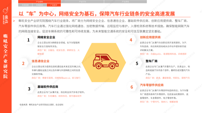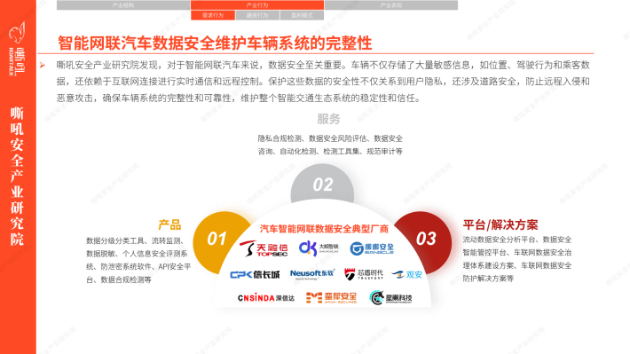 汽车智能网联安全是汽车行业与人工智能、大数据、物联网等新一代信息技术深度融合后的结果,嘶吼安全产业研究院自主界定汽车智能网联安全包括: (汽车)网络安全、车联网安全、智能硬件安全、基础软件安全、数据安全等。