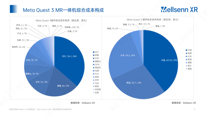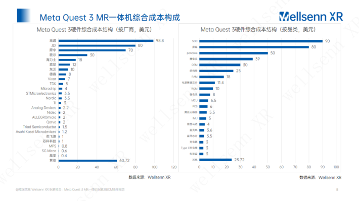 综合硬件成本按部件来看,头显成本约为223.8美元,占比80.1%;两个手柄成本约为30.9美元,占比11.1%;ODM/OEM成本约为15美元,占比5.4%;