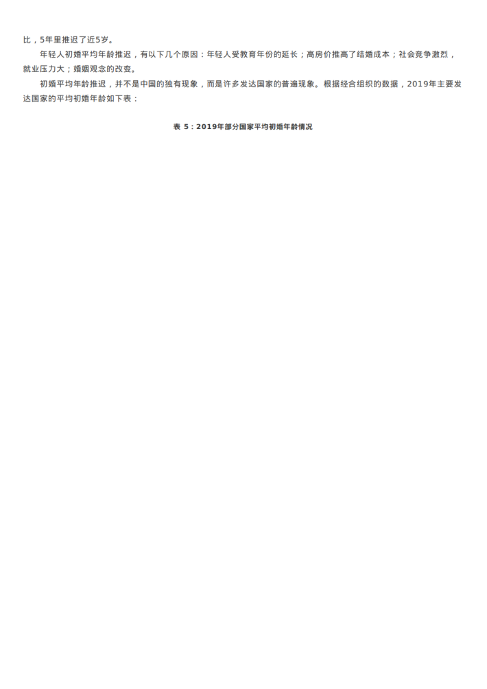 根据《中国统计年鉴2021》的数据,按每五岁分组的人口数来看,2020年30-34岁人口有12415万人,25-29岁人口有9185万人,20-24岁人口有7494万人。由于步入婚龄人口数量呈不断下降趋势,可以预计,未来几年我国的初婚人数仍然会继续下降。