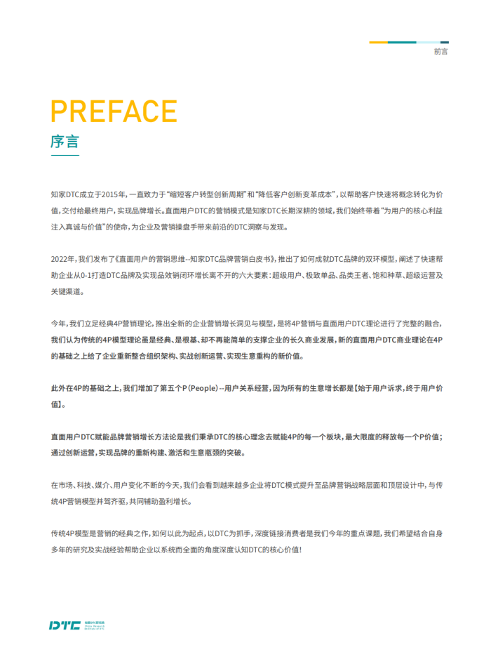 传统4P模型是营销的经典之作,如何以此为起点,以DTC为抓手,深度链接消费者是我们今年的重点课题,我们希望结合自身多年的研究及实战经验帮助企业以系统而全面的角度深度认知DTC的核心价值!