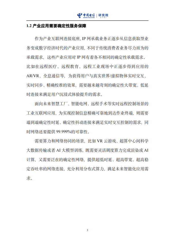 产业应用对IP承载质量有着明确的要求,需要确定性的服务保障,传统IP尽力而为的承载服务难以满足产业应用需求。为解决新型工业化和工业互联网等对广域网高速稳定连接的需求,中国电信首创IP网络3.0体系架构,突破了业务连接与网络连接资源无法动态适配的问题,面向工业互联网提供了跨广域网的确定性服务底座,助力国家东数西算战略实施,解决工业各大场景的跨广域网、随呼随用、秒级开通等海量数据传输需求。