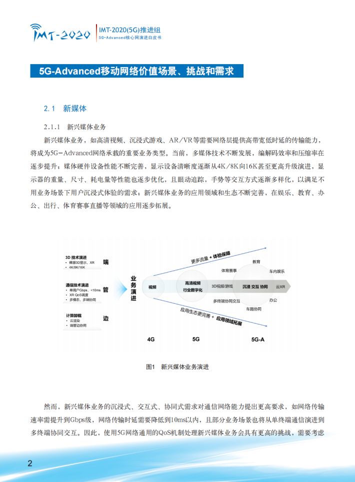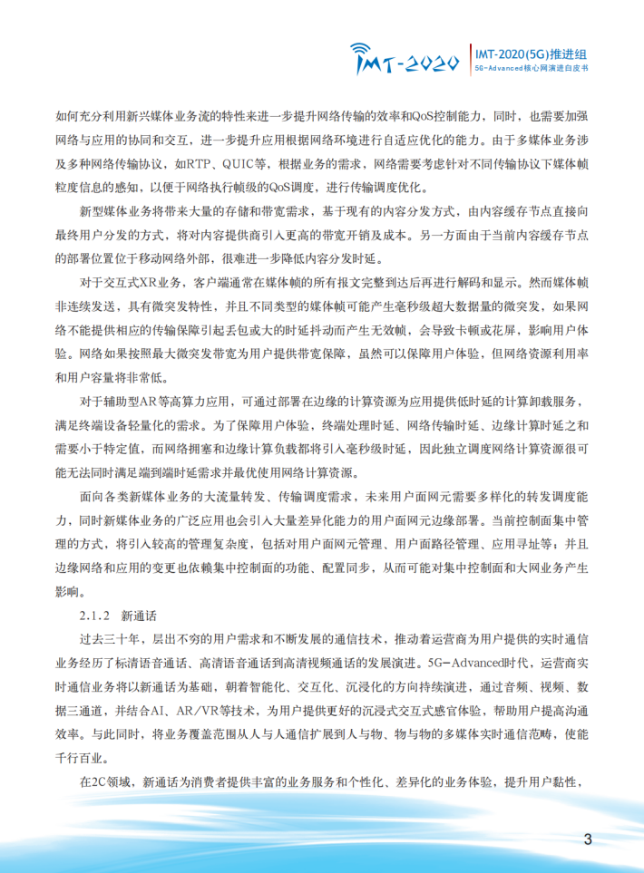 新媒体方面,随着8K视频、裸眼3D、XR和新通话等应用的不断发展,未来将实现更加真实和自然的虚拟现实体验,并会进一步和AI以及物联网深入结合,推动更加广泛和深入的应用。而这些应用场景需要媒体协议层优化和按需调度以及5G网络边缘上部署媒体渲染等处理设备。