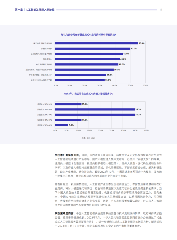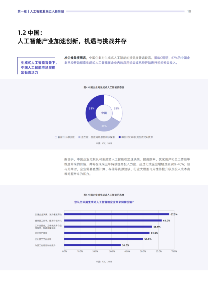 2023年是人工智能发展的重要转折年,企业正加速从业务数字化迈向业务智能化。大模型的突破和生成式人工智能的兴起为企业实现产品/流程的革新提供先进生产工具,引领企业和产业迈入智能创新的新阶段。对于企业人而言,其将不再局限于思考“如何在产品/流程中增加智能化能力”,而需要更多关注“如何使用人工智能实现产品/流程的革新”。