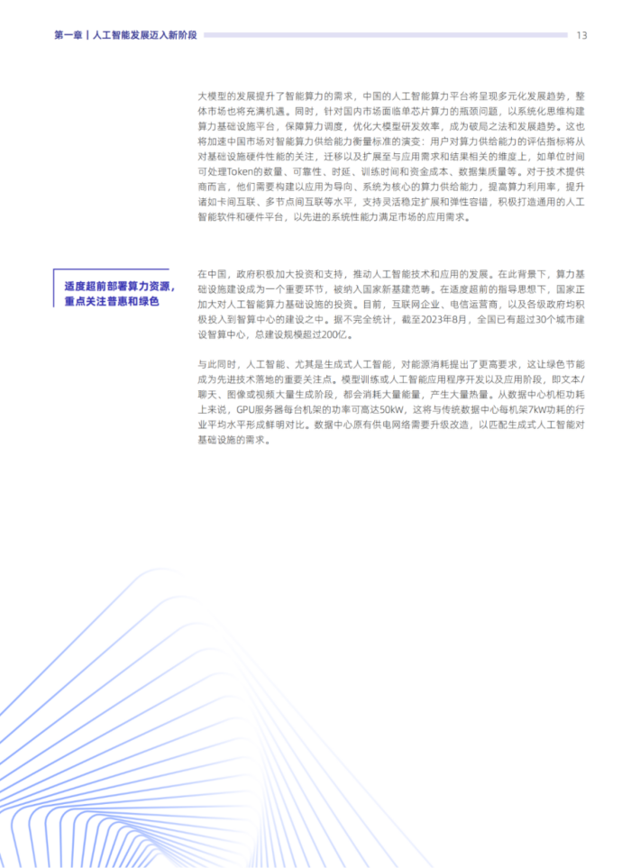 从计算范式角度而言,人工智能算力基础设施将持续向高性能、高互联等方向演进以更高的计算能力和链接速度加速实现大规模参数和数据集的训练和调优;不断提升算力泛在性,推进人工智能在云-边-端的覆盖,满足无处不在的智能化需求;通过优化计算架构、算法和软件栈,支持多元异构算力的协同,构建软硬件生态,加速计算技术的发展和创新。