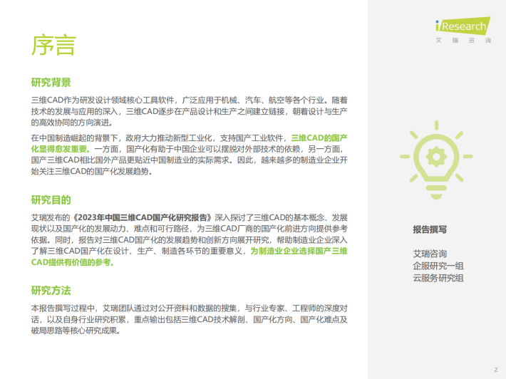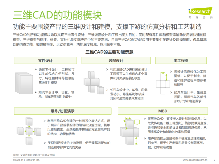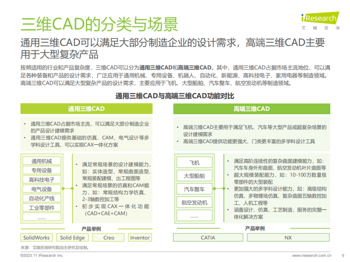 CAD属于工业软件分类中的研发设计类软件,包括二维CAD和三维CAD两类。其中,三维CAD(Three-Dimensional Computer-Aided Design)是一种利用计算机技术进行三维物体建模和设计的工具。它可以帮助工程师在计算机上创建、编辑和分析三维模型,以实现产品设计任务。三维CAD是最核心、最基础的工业软件之一,其数据模型是产品数字化的源头。