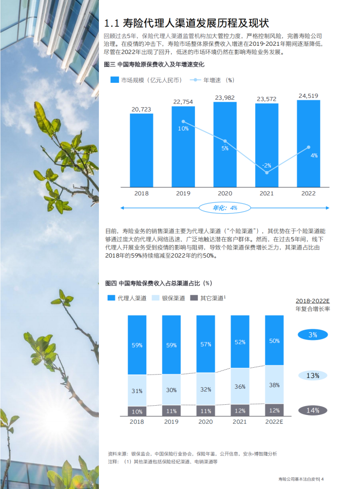 寿险行业代理人渠道已有三十余年的发展历程,从最开始的粗放式扩张,逐步进入到精细化发展阶段。近年来,代理人渠道进入发展瓶颈期,面临保费增速下降、代理人队伍流失等问题,转型迫在眉睫。