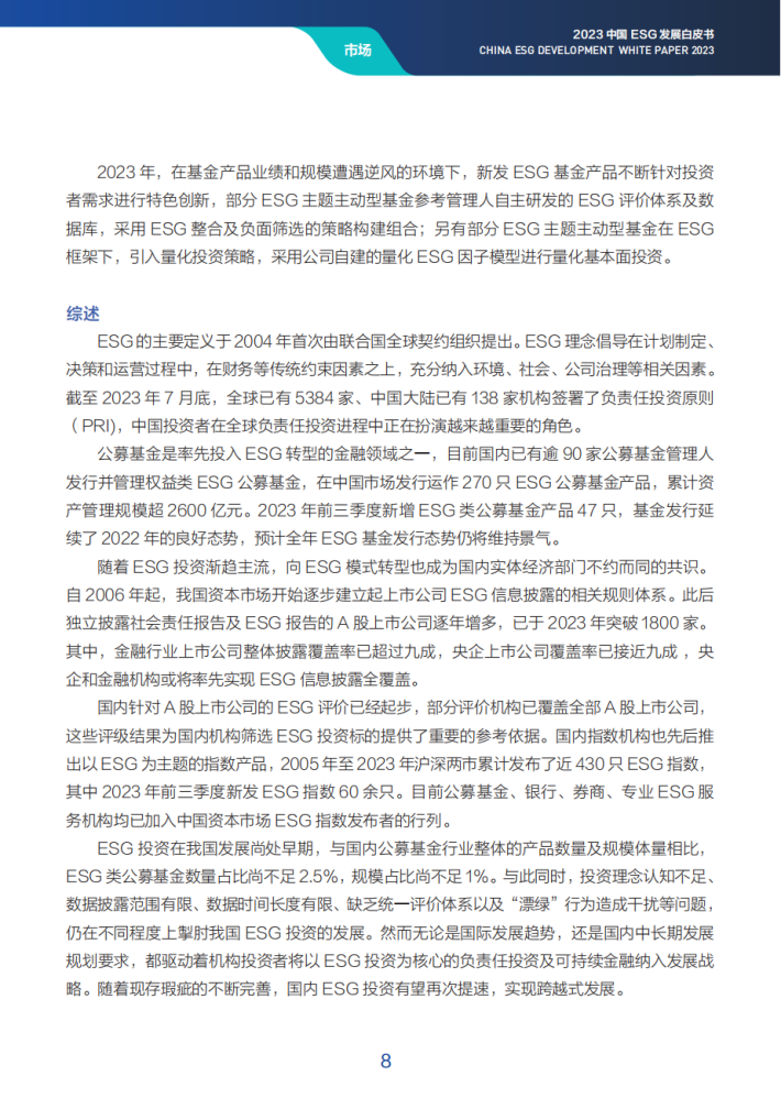 与此同时,监管层正在着力推动解决ESG本身被诟病的许多问题,如“洗绿”、数据披露、标准和评级问题等。ISSB的两份可持续披露标准已经发布并得到不少国家和地区的背书,迈出了获得更可信、更可比的ESG数据的重要一步。同时,领先的市场(如欧盟、美国、英国、中国香港、澳大利亚、新加坡等)已经持续推出了许多加强ESG监管、规范市场的措施,如加强ESG基金名称管理、分类标准,严格消费市场的可持续产品宣称,加强中介评级机构监管等。