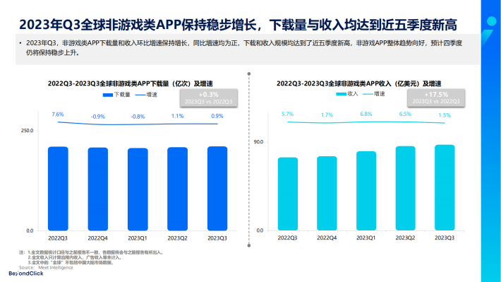 Q3非游戏类APP下载量继续保持小幅增长,创近五季度新高,部分新兴市场用户需求涌现,预计四季度仍将保持稳步增长。