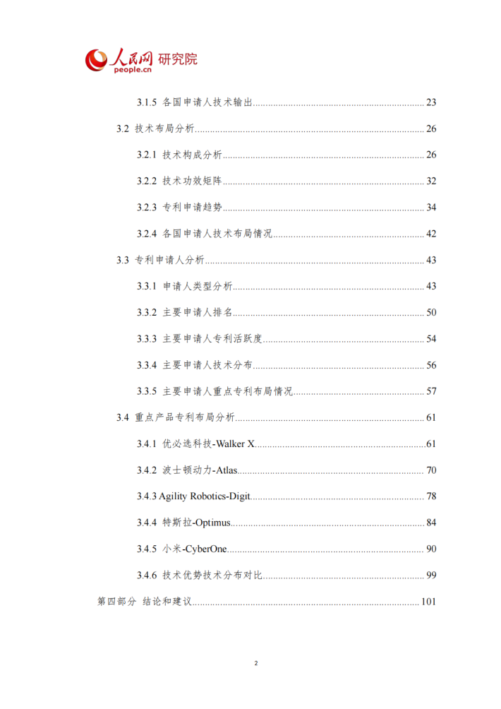 基于行业发展需要,本研究报告主要包括以下内容:通过采集相关专利数据,并按技术分解表标引分类,形成各维度的专利地图,结合市场调研、技术调研、专利分析综合分析行业态势,给出人形机器人领域发展建议。