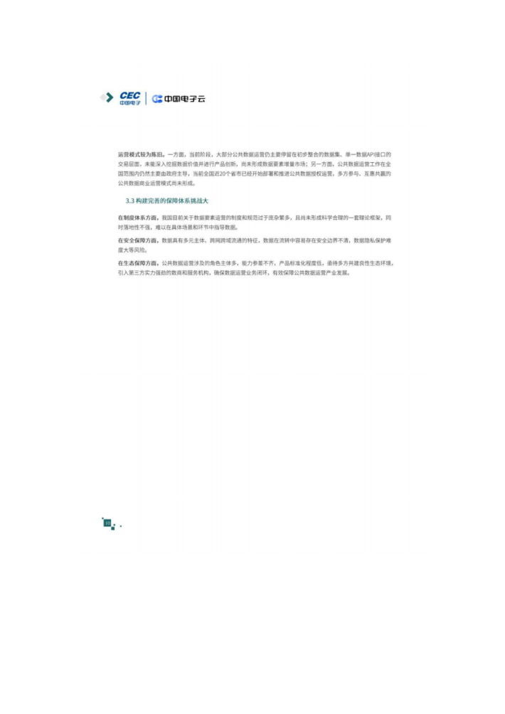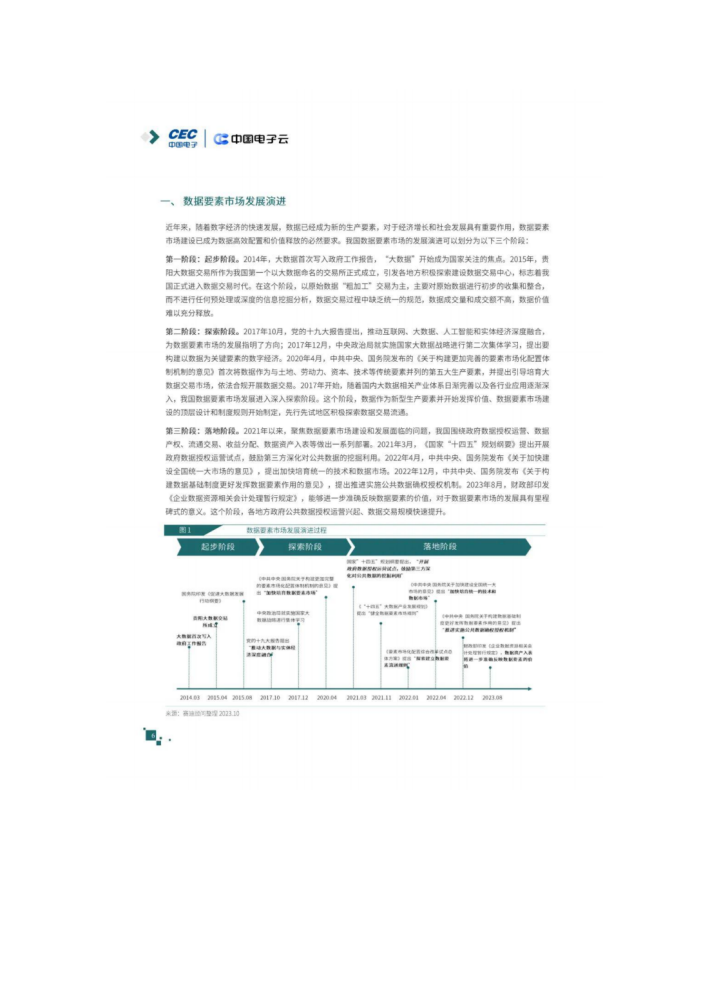 第三阶段:落地阶段。2021年以来,聚焦数据要素市场建设和发展面临的问题,我国围绕政府数据授权运营、数据产权、流通交易、收益分配、数据资产入表等做出一系列部署。2021年3月,《国家“十四五”规划纲要》提出开展政府数据授权运营试点,鼓励第三方深化对公共数据的挖掘利用。2022年4月,中共中央、国务院发布《关于加快建设全国统一大市场的意见》,提出加快培育统一的技术和数据市场。2022年12月,中共中央、国务院发布《关于构建数据基础制度更好发挥数据要素作用的意见》,提出推进实施公共数据确权授权机制。2023年8月,财政部印发《企业数据资源相关会计处理暂行规定》,能够进一步准确反映数据要素的价值,对于数据要素市场的发展具有里程碑式的意义。这个阶段,各地方政府公共数据授权运营兴起、数据交易规模快速提升。