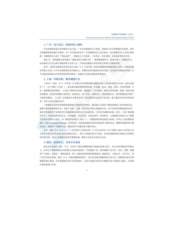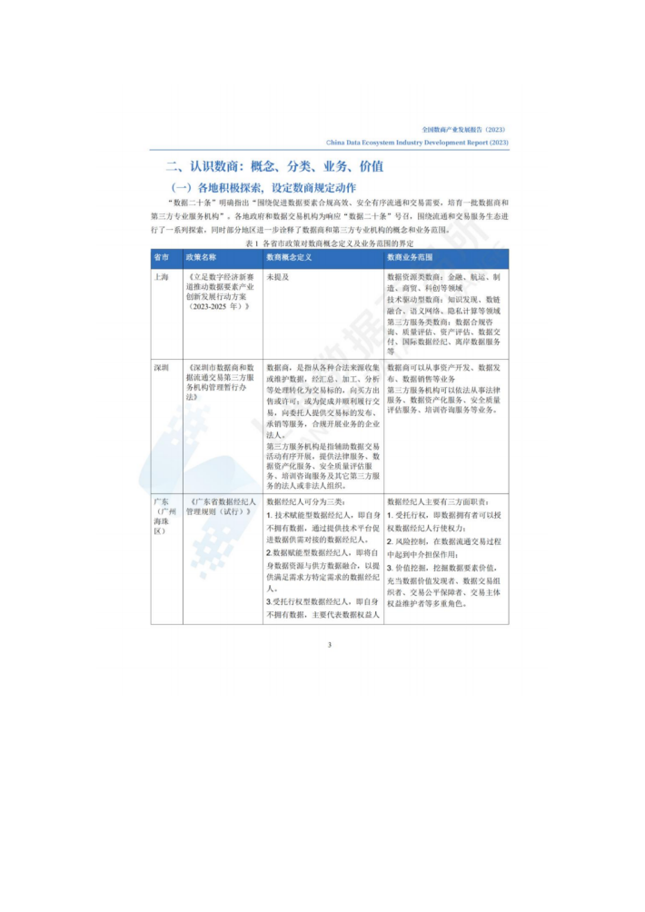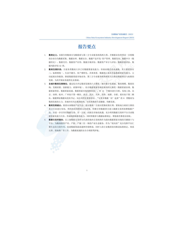 数商发展建议:展望未来数商产业生态,建议数商一方面应把握政策红利,紧贴地方政府主推的重点行业进行布局,利用政府的财政支持政策,积极引导数据供方进入数据交易所挂牌数据产品,并进一步引导至数据交易;另一方面,应抓住市场化机遇,充分利用数据交易所平台寻求数据要素化能力互补,形成端到端服务能力,同时积极参与数据标准制定,增强垂直赛道话语权。数据交易所服务:以上海数据交易所为代表的场内交易机构作为面向数据要素市场的关键窗口与平台,为数商提供产培、产投、产服三位一体的产业生态服务,作为“组局者”充分发挥平台汇聚生态各方的作用,促进数据要素流通和价值释放;同时与各行业数商协同推进标准制定、体系完善、落地推广等工作,为数据流通的安全合规保驾护航。