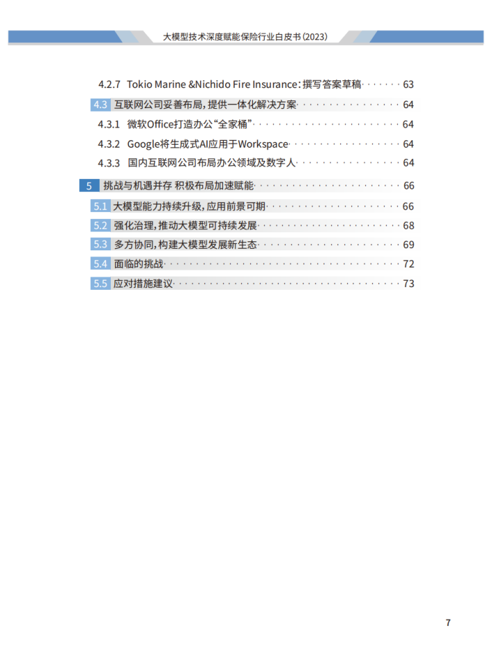 面对当今世界百年未有之大变局,我国在党的二十大精神指引下,以全面建成中国式现代化为主要目标进行了全方位战略布局。2023年10月30日召开的中央金融工作会议指出:“金融是国民经济的血脉,是国家核心竞争力的重要组成部分”、“做好科技金融、绿色金融、普惠金融、养老金融、数字金融五篇大文章”。保险业需要提高认识和站位,系统分析面临的形势、问题和挑战,坚定不移地推动保险改革与创新。我们认为,本次《大模型技术深度赋能保险行业白皮书》的发布恰逢其时,为保险业做好科技金融和数字金融两篇大文章提供了有力支撑。我们将坚定地走在创新前沿,将大模型技术与保险业务深度融合,为保险行业从科技赋能向科技引领的转变探索更多可能性。同时,我们也将与各界合作伙伴携手共进,共同推动科技保险和数字保险的发展,共创保险行业的美好未来!