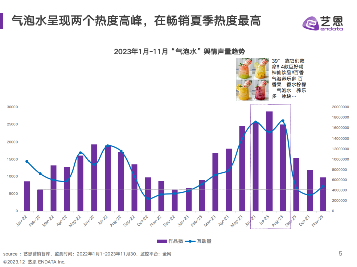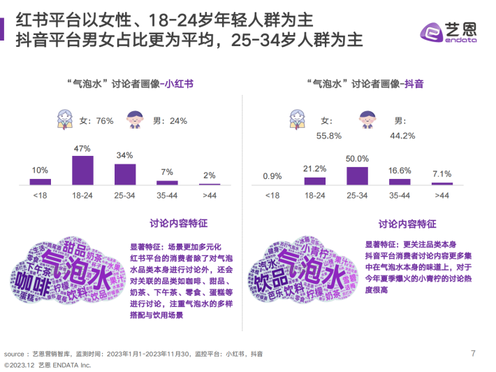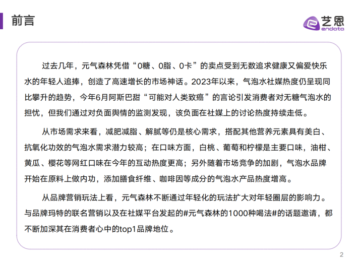 过去几年,元气森林凭借“O糖、0脂、0卡”的卖点受到无数追求健康又偏爱快乐水的年轻人追捧,创造了高速增长的市场神话。2023年以来,气泡水社媒热度仍呈现同比攀升的趋势,今年6月阿斯巴甜“可能对人类致癌”的言论引发消费者对无糖气泡水的担忧,但我们通过对负面舆情的监测发现,该负面在社媒上的讨论热度持续走低。