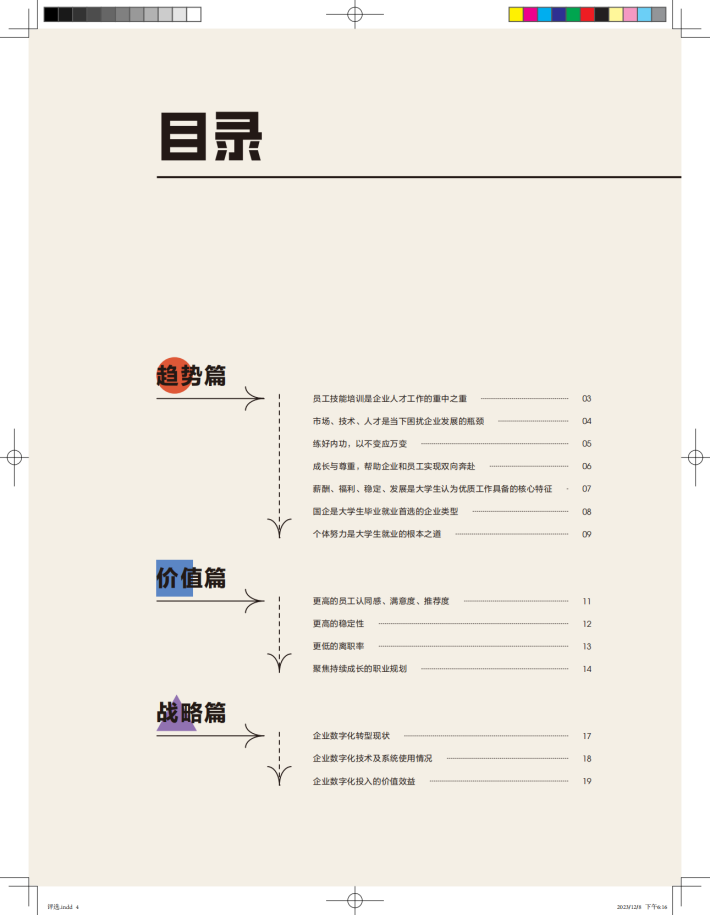 2023年,企业数字化转型进入快车道,越来越多的企业将“数字化转型”从战略意识下沉到管理实践,数字化转型引发的技术革命正在牵动生产关系的变革,员工也能切实感受到产业轮动、技术变革对职业规划、工作方式的影响。数字化新技术与产业的融合更加深入,为制造、能源、医疗等实体产业的转型升级赋能。此外,数字化的新职业、新岗位的不断涌现,也为职场人提供更多的可能性和新的选择。
